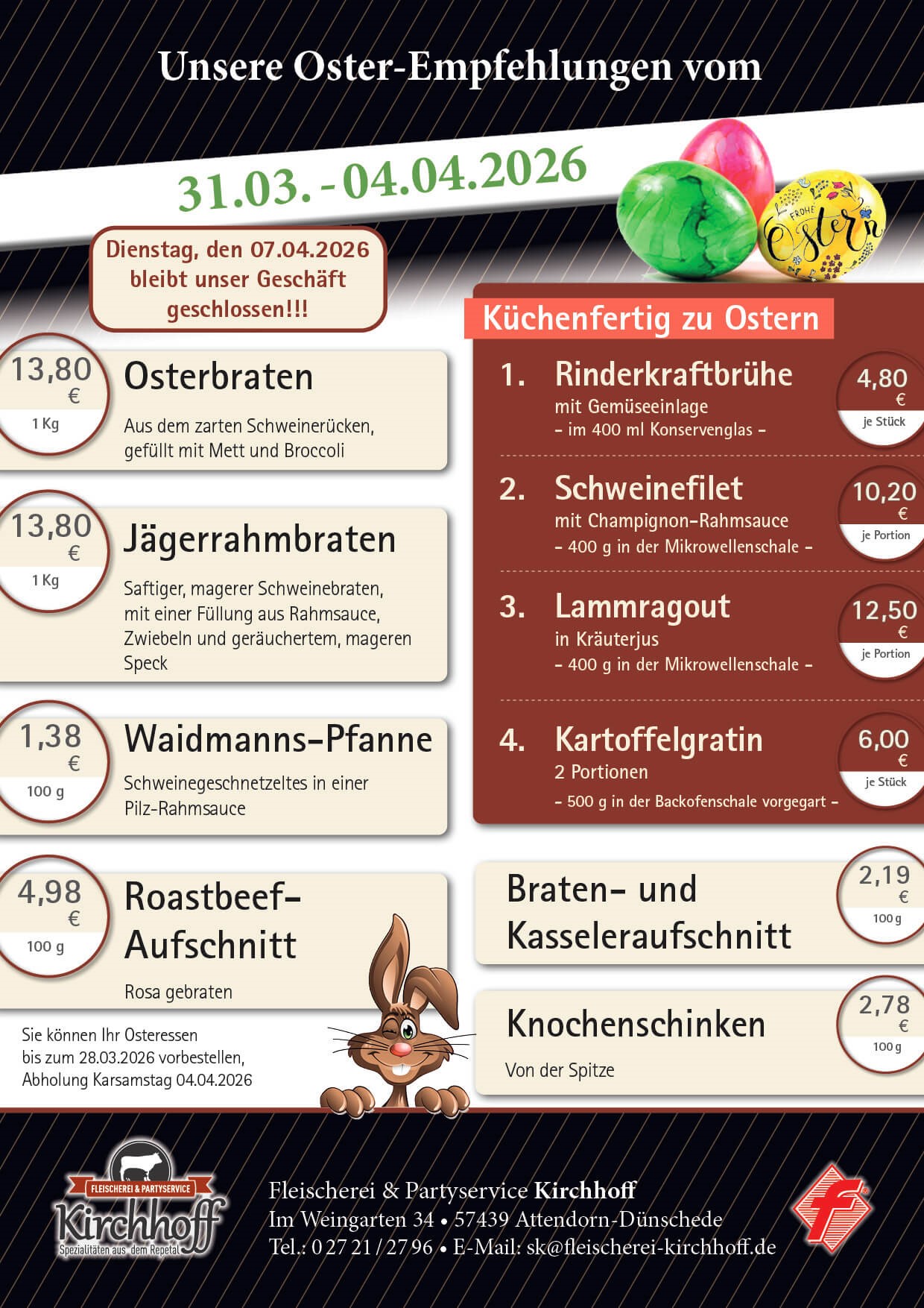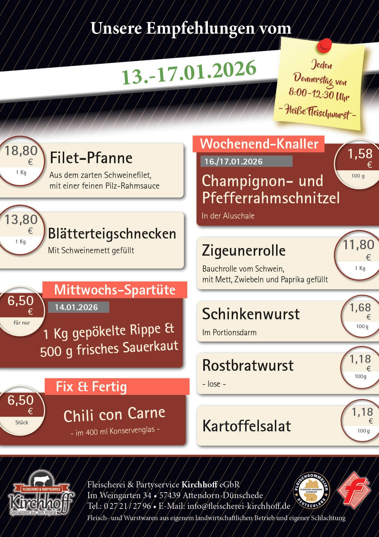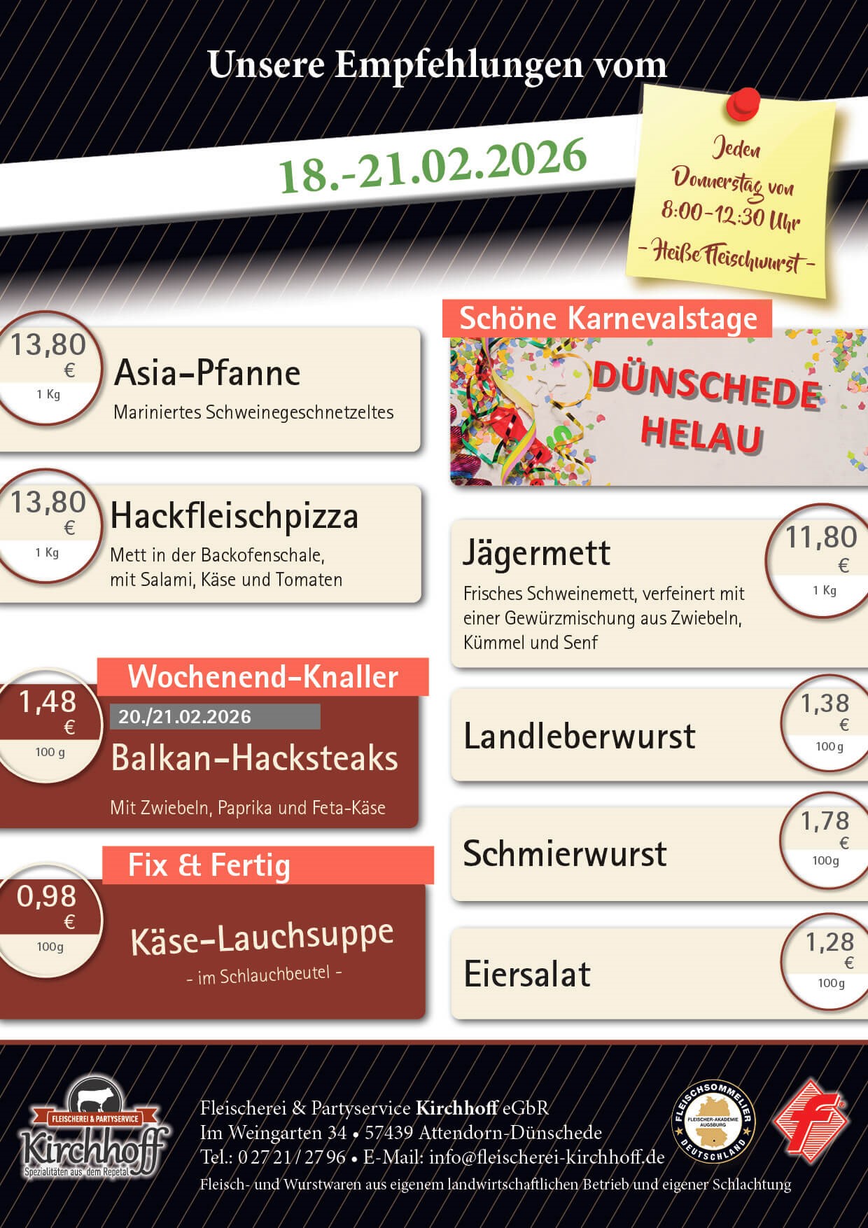 Willkommen bei der Fleischerei & Partyservice Kirchhoff in Dünschede